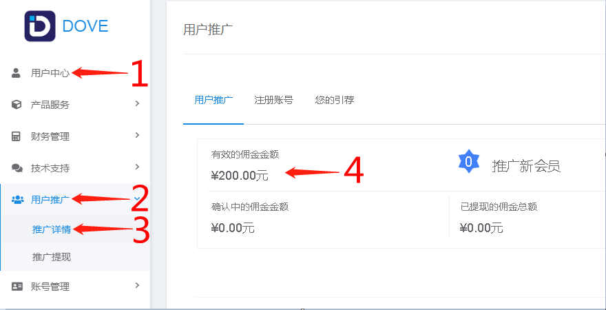 帮助中心 - DOVE服务介绍 > 如何查看推广佣金余额