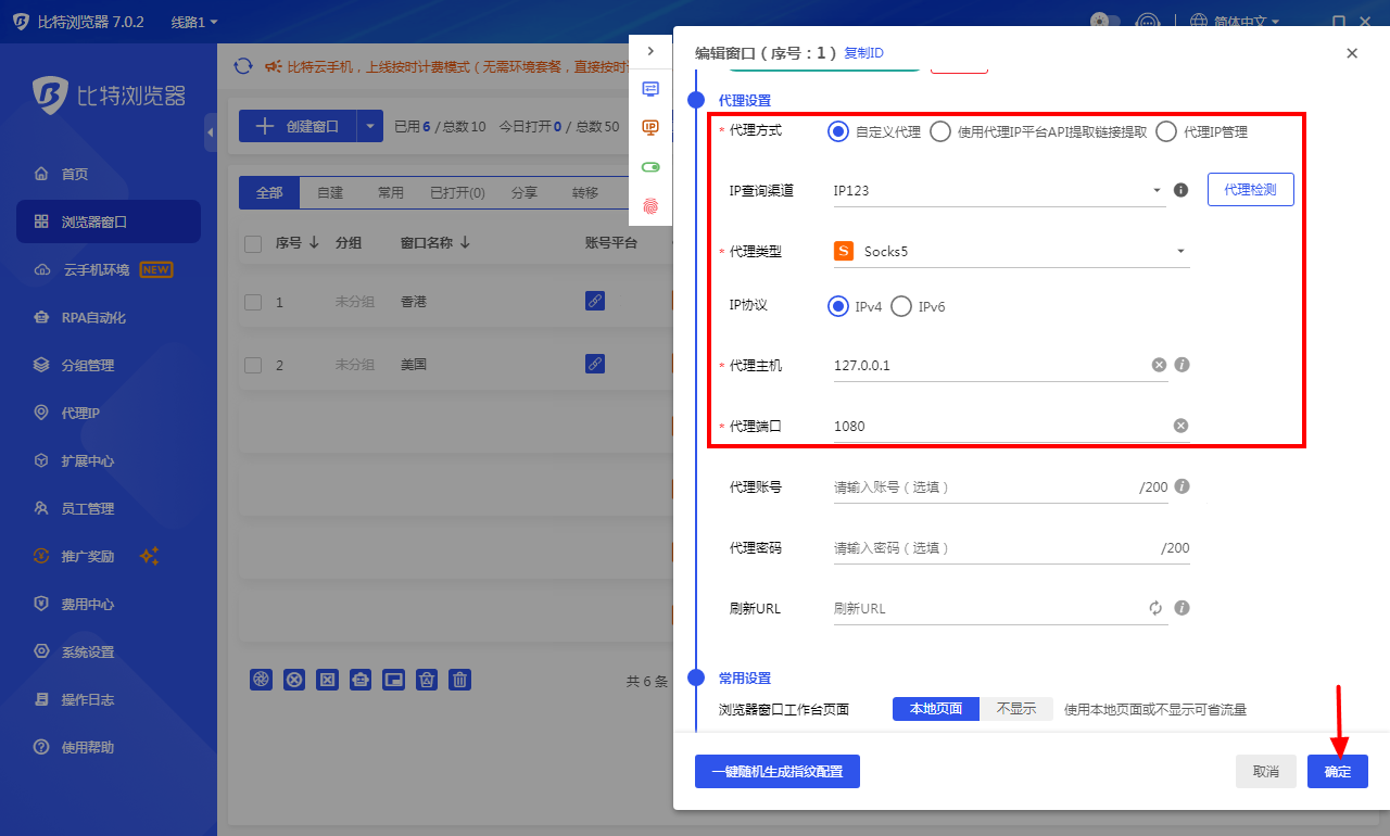 第3步:打开运行比特浏览器,选择新建窗口或是修改某个窗口配置